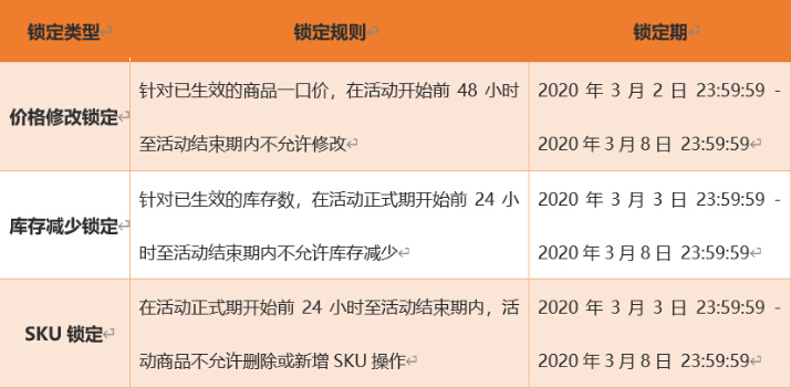 注:针对多sku促销价报名的商品一旦审核通过都不允许进行编辑、修改、下架等操作,如需调整SKU请退出活动重新报名。
